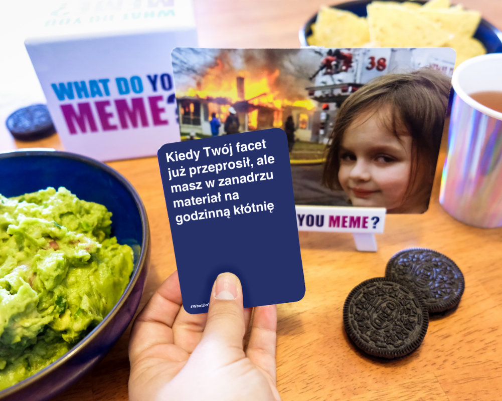 Uwaga! Możecie urozmaicić rozgrywkę poprzez wykorzystanie karty Freestyle, dzięki której każdy z graczy będzie musiał wymyślić swoje własne hasło do obrazka. Ponadto, możecie dołożyć do talii własne zdjęcia – nie wyobraźcie sobie nawet, jak zabawne jest przerabianie na memy ludzi, których zna się osobiście.